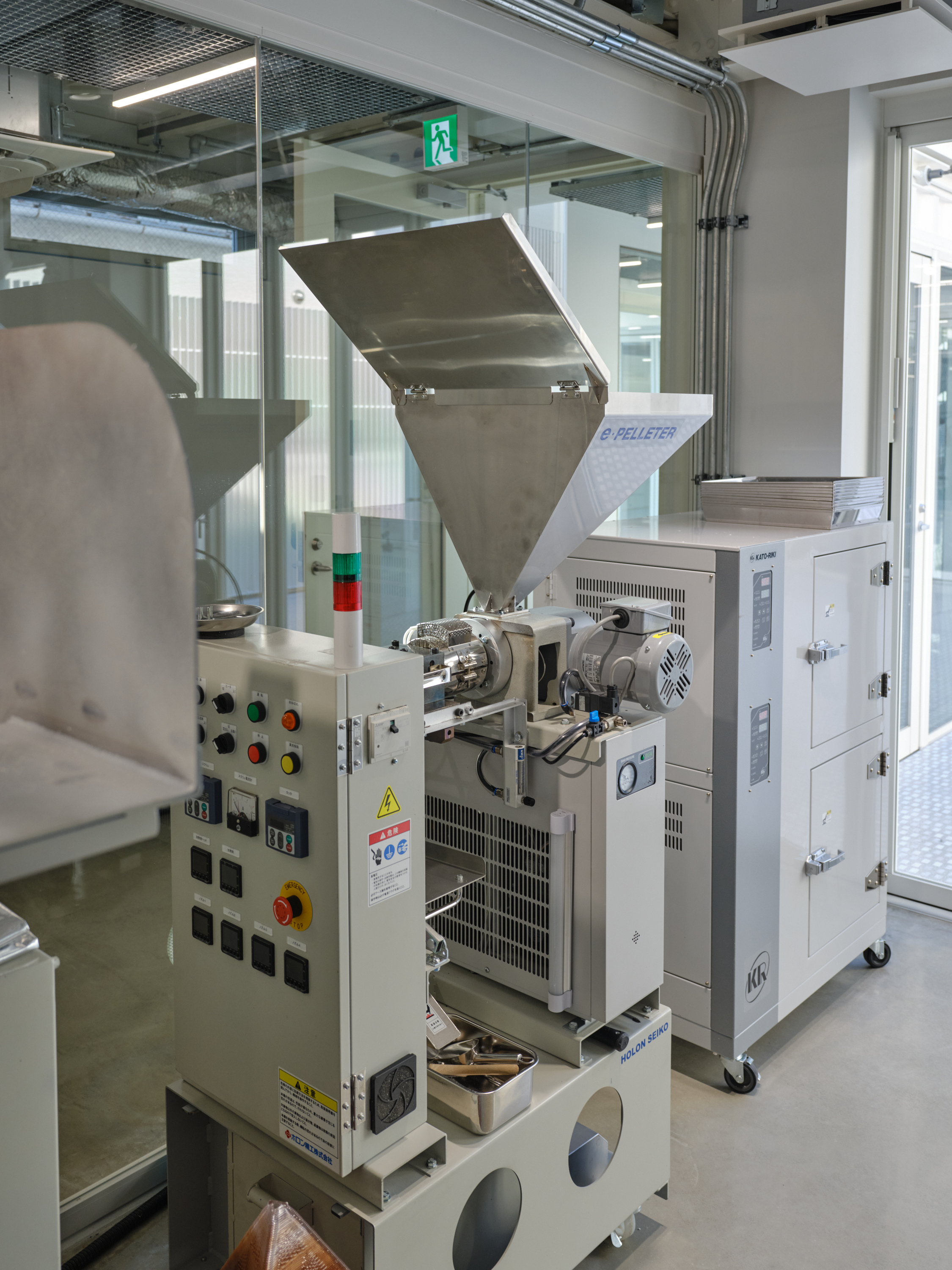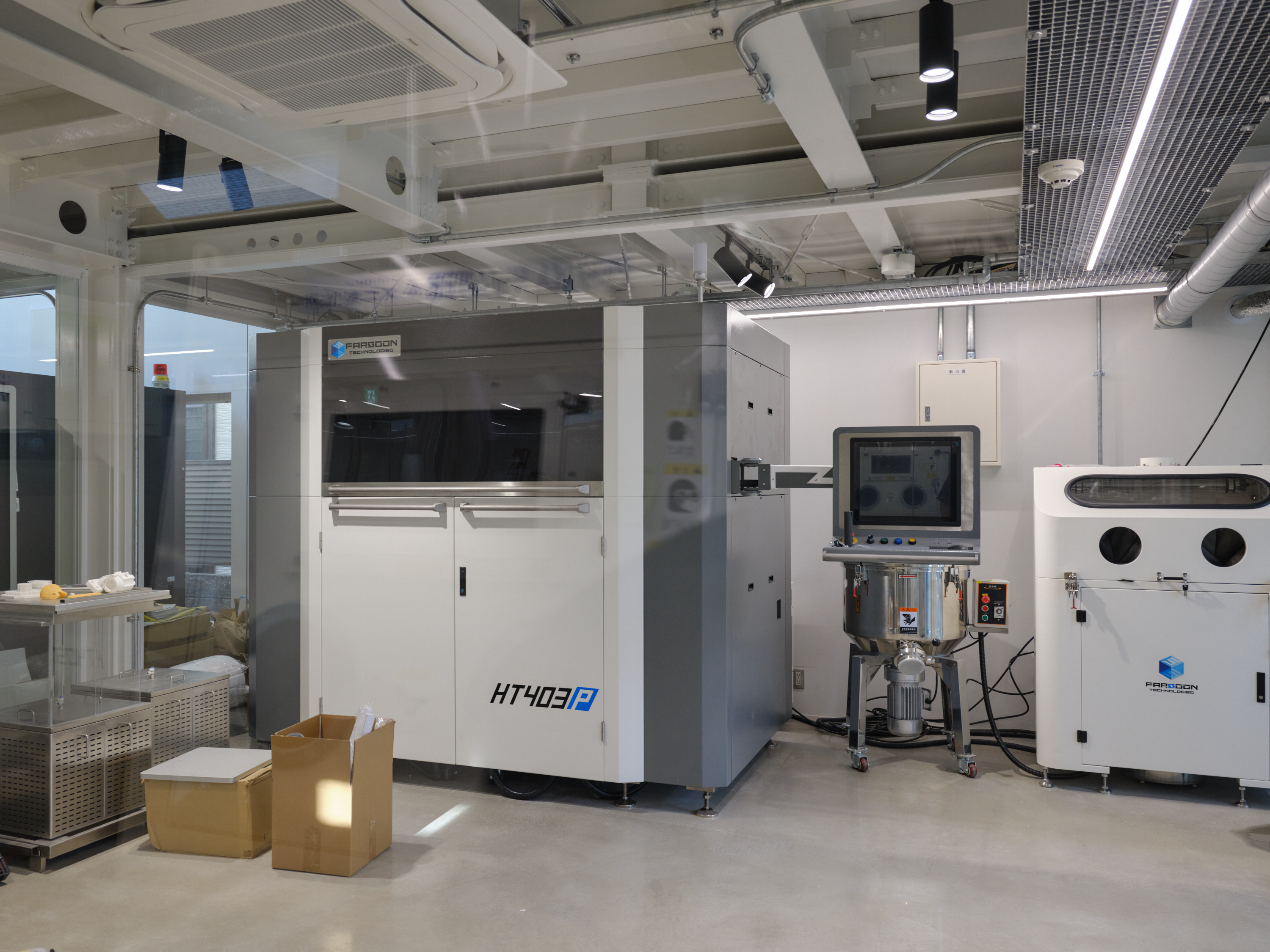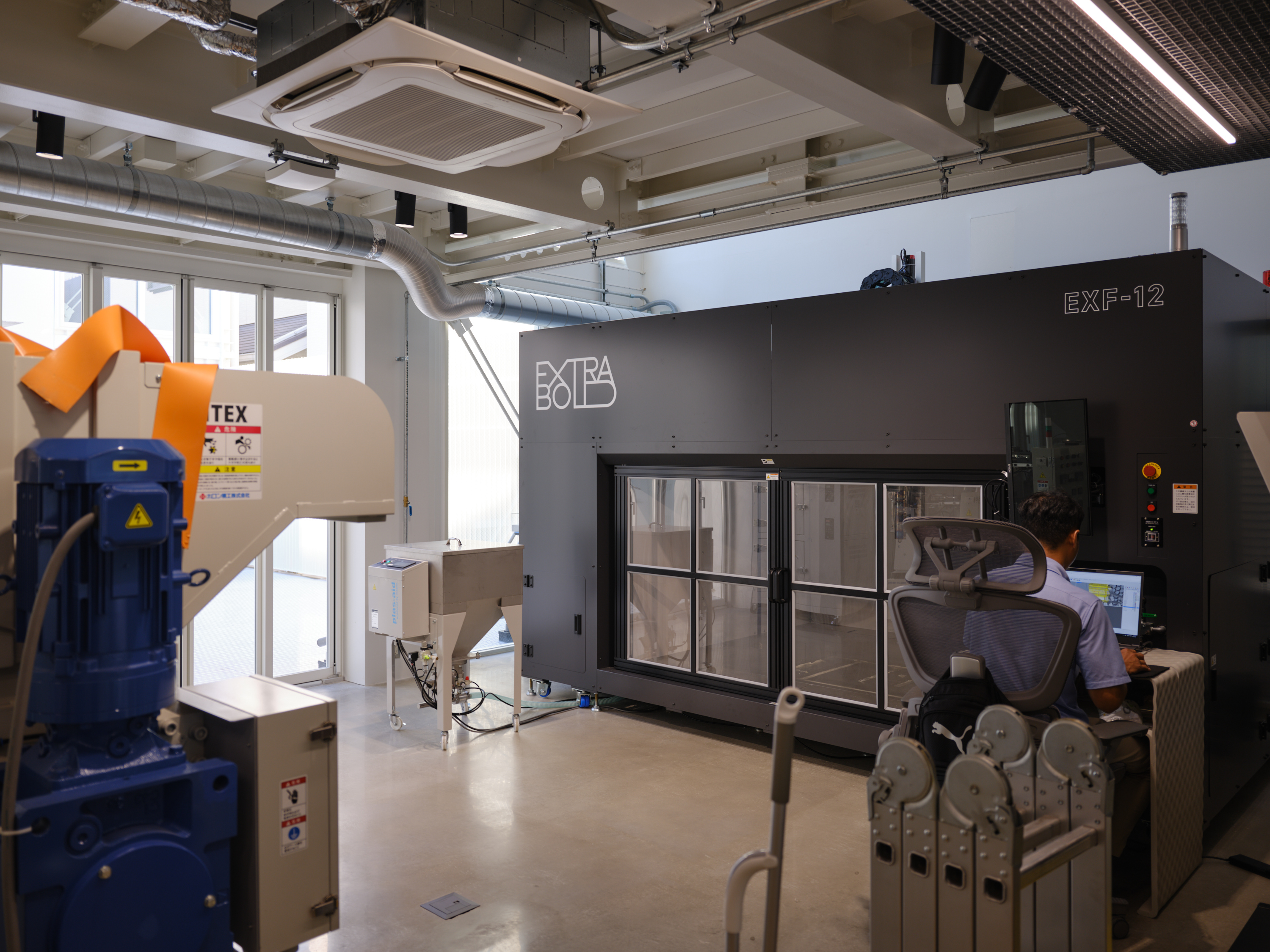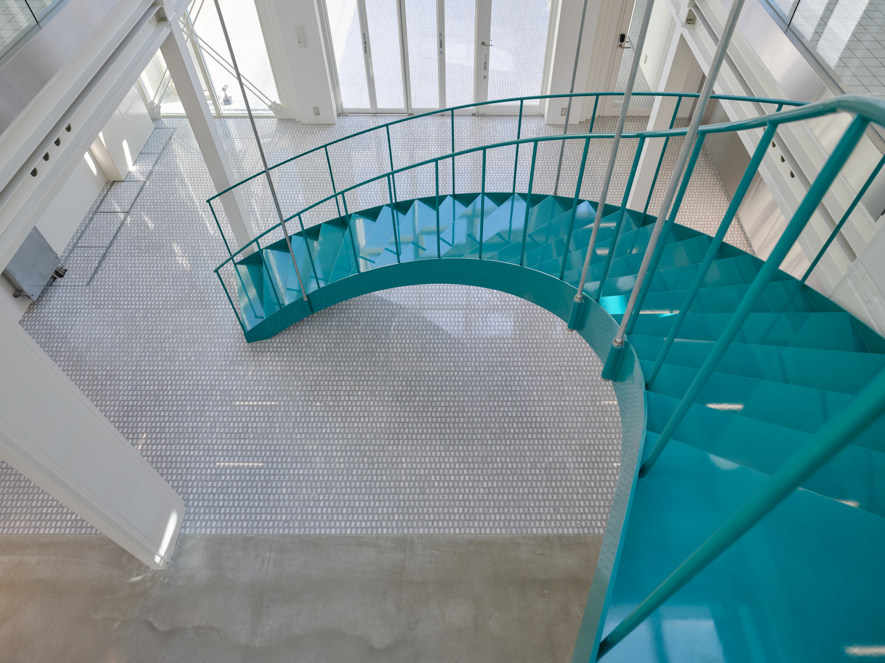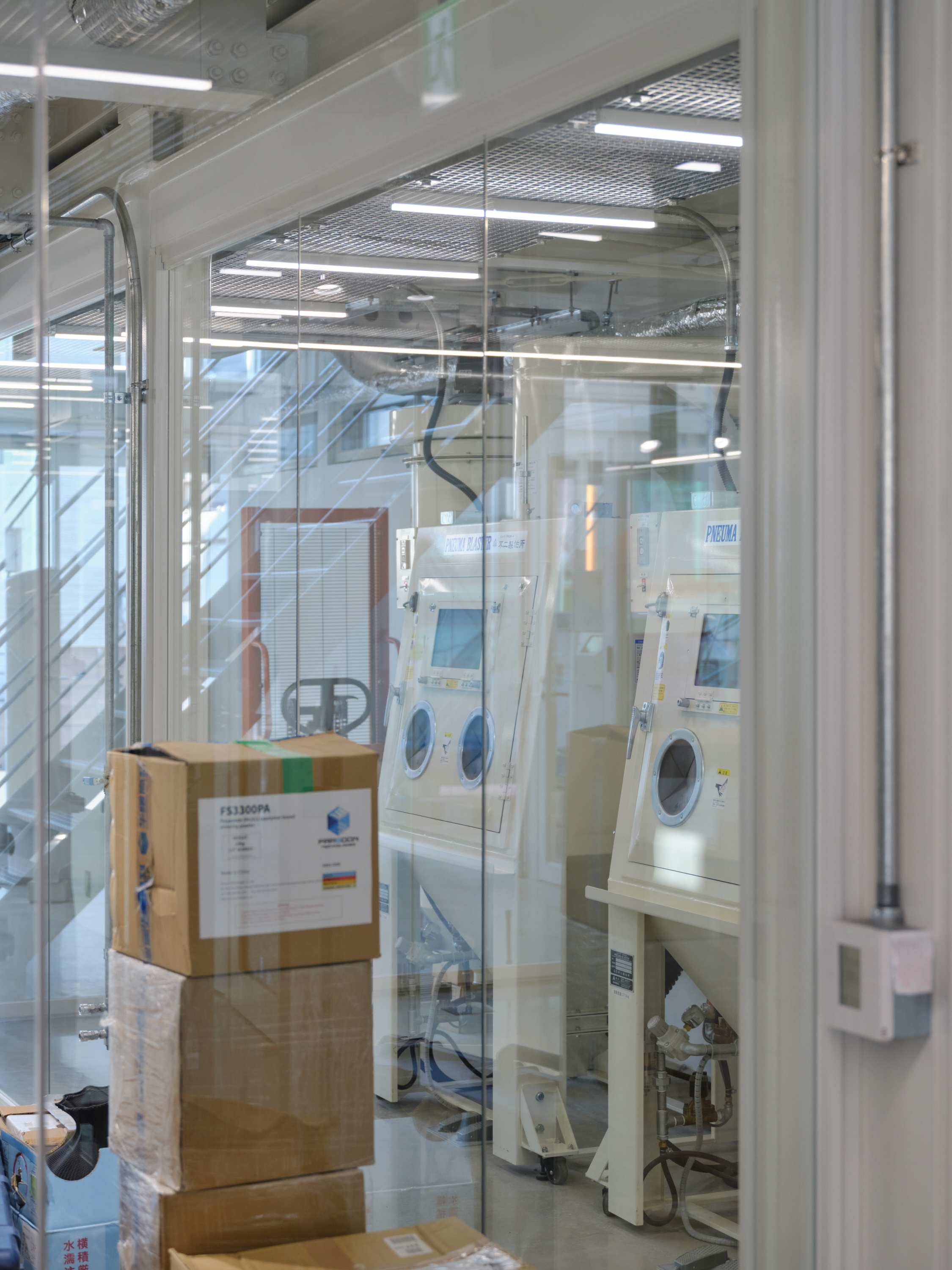 This project is for a metal processing company in Matsubara City, Osaka Prefecture, which is expanding its business by introducing large 3D printers and other equipment, and opening the facility to the local community as a community space. As the title suggests, this facility embodies the client's spirit of craftsmanship, where "1+1=3". We joined the project just before construction began and were mainly in charge of interior design and overall design supervision. However, when we joined, the identity of the facility as a community hub for craftsmanship had not yet been designed, so we adjusted the architectural structure as much as possible while organizing the usage, zoning, and traffic lines, and proposed to install a large staircase in the atrium in the center of the building and a skylight to illuminate it. Therefore, we thought that this staircase should be a symbol that conveys the client's attitude toward craftsmanship, and worked with the client to come up with details that the client could manufacture in his own factory. We also aimed for a light and flexible shape that is suspended from the roof and rises and then falls slightly in a spiral to dominate the entire space. It is scheduled to be completed around August 2025.